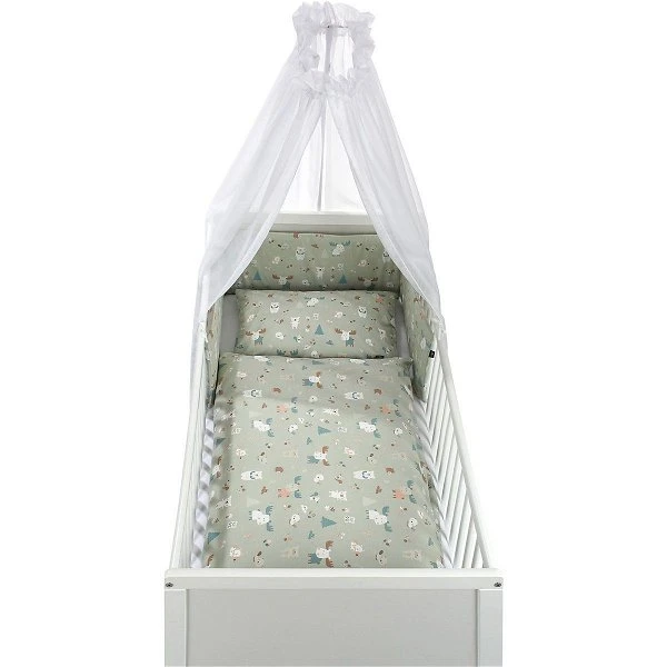 Kaum etwas wird so sehr als kleines Wunder erlebt als die Geburt des eigenen Kindes. Mit dem Alvi Bettset Baby Forest können Sie Ihren kleinen Liebling angemessen willkommen heißen. Die Bettwäsche, der Himmel und das Nestchen sind aus weicher Baumwolle.