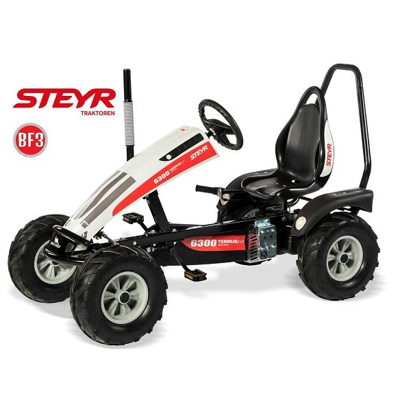 Farmers welcome! Der Steyr BF3 mit Traktorbereifung ist euer optimales Arbeitsfahrzeug für den Bauernhof. Dieses Go-Kart von DINO CARS im Steyr Design lässt die Herzen der kleinen und großen Landwirte kräftig höher schlagen.