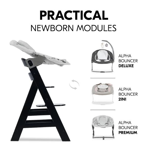 Kombiniert mit den Alpha Bouncer Babyaufsätzen, die auch als Babywippe nutzbar sind, ist dein Baby von Beginn an auf Augenhöhe mit der Familie. Ergänzen kannst du den Alpha+ mit verschiedenen Essbrettern, Hochstuhlauflagen, Sitzverkleinerern, Aufbewahrungsboxen und dem individualisierbaren Spielbrett.