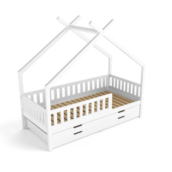 Das Nature Kid Clara Hausbett ist ein Highlight für jedes Kinderzimmer. Es ist gemütlich und verfüg nicht nur über ein Gästebett sondern auch über einen zweigeteilten Bettkasten zum Verstauen von Bettzeugs und Spielsachen. Auf dem ausziehbaren Gästebett können die kleinen und auch großen Übernachtungsgäste eine bequeme Nacht verbringen.