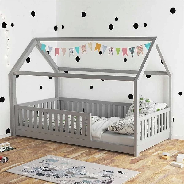 Nature Kid Lilly Hausbett massiv Kiefer, grau lackiert
