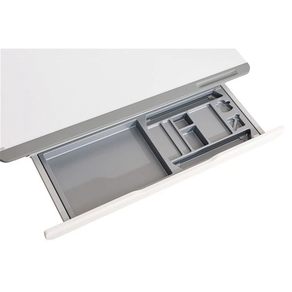 Kreideweiße Griffblende, Utensilienschale mit Unterteilungen für Schreibzubehör, Notebook, etc.