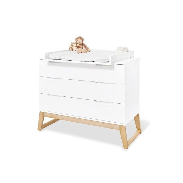 Mit zeitlosen und modernem Design lässt die Pinolino Bridge Wickelkommode jeden Raum erstrahlen. Die Self-Soft-Close Schubladen sorgen für eine sichere und angenehme Handhabung und dank des abnehmbares Wickelaufsatzes lässt sich die Kommode auch nach der Wickelzeit wunderbar verwenden. Durch die hochwertigen Sockel aus massivem Eschenholz sind die Möbel besonders stabil und langlebig.