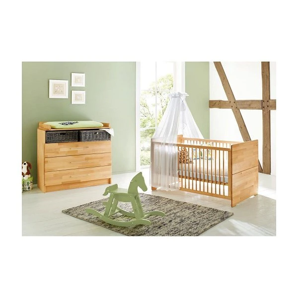 Das Pinolino Natura Sparset besteht aus einem Kinderbett und einer breiten Wickelkommode.