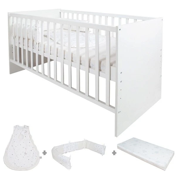 Das Roba Komplettbett-Set ist perfekt geeignet für die Erstausstattung Ihres Babys. Mit Matratze, Nestchen und Schlafsack bietet dieses Komplett-Set alles, was für einen ruhigen und sicheren Schlaf benötigt wird. Dank der 3-fachen Höhenverstellung und der separat erhältlichen Umbauseiten begleitet das Bett Ihr Kind von der Geburt bis ins Schulalter.