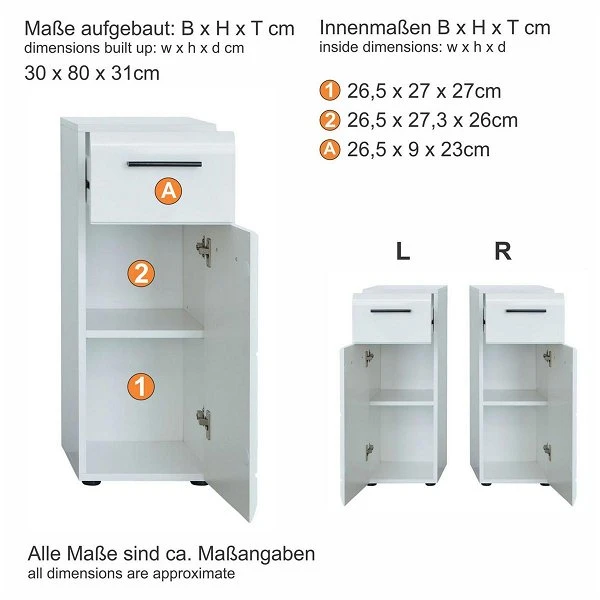 - Maße B/H/T: 30 / 77 / 23 cm